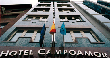 El Hotel Campoamor se caracteriza por toda una galaxia de atenciones, el nivel de sus modernas y acogedoras instalaciones y su situación, sencillamente insuperable, en pleno centro urbano frente al Teatro Campoamor donde se unen los dos oviedos: el casco antiguo y medieval con el moderno ensanche del siglo XX.
